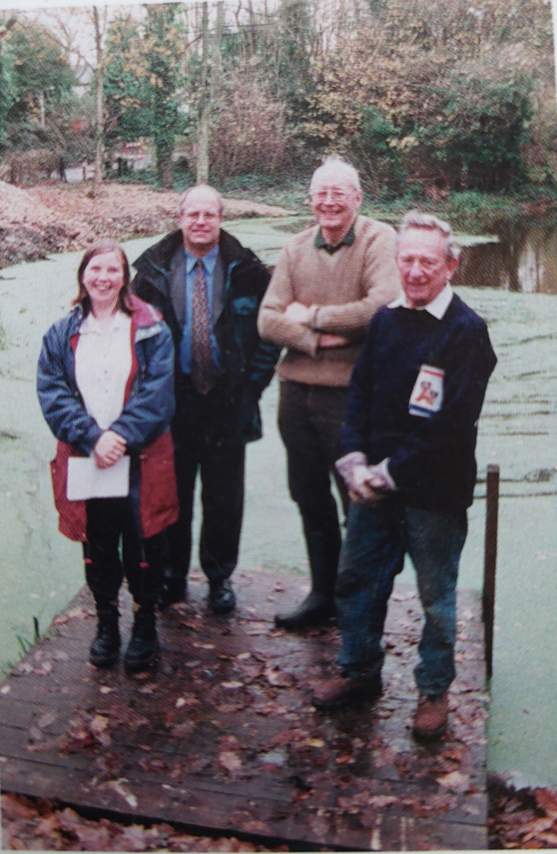 With advice from SWT, the British Trust for Conservation Volunteers and West Sussex County Council, and financial help from Chichester District Council, a small working party started in 1990 to clear the undergrowth, plant some 1500 trees and bushes, and re-establish the hedge along the roadside. The first major task was to erect a post-and-rail chestnut fence along approximately 300 yards of the road boundary and replant the hedge, which was done with the help of soldiers from the nearby RMP barracks.