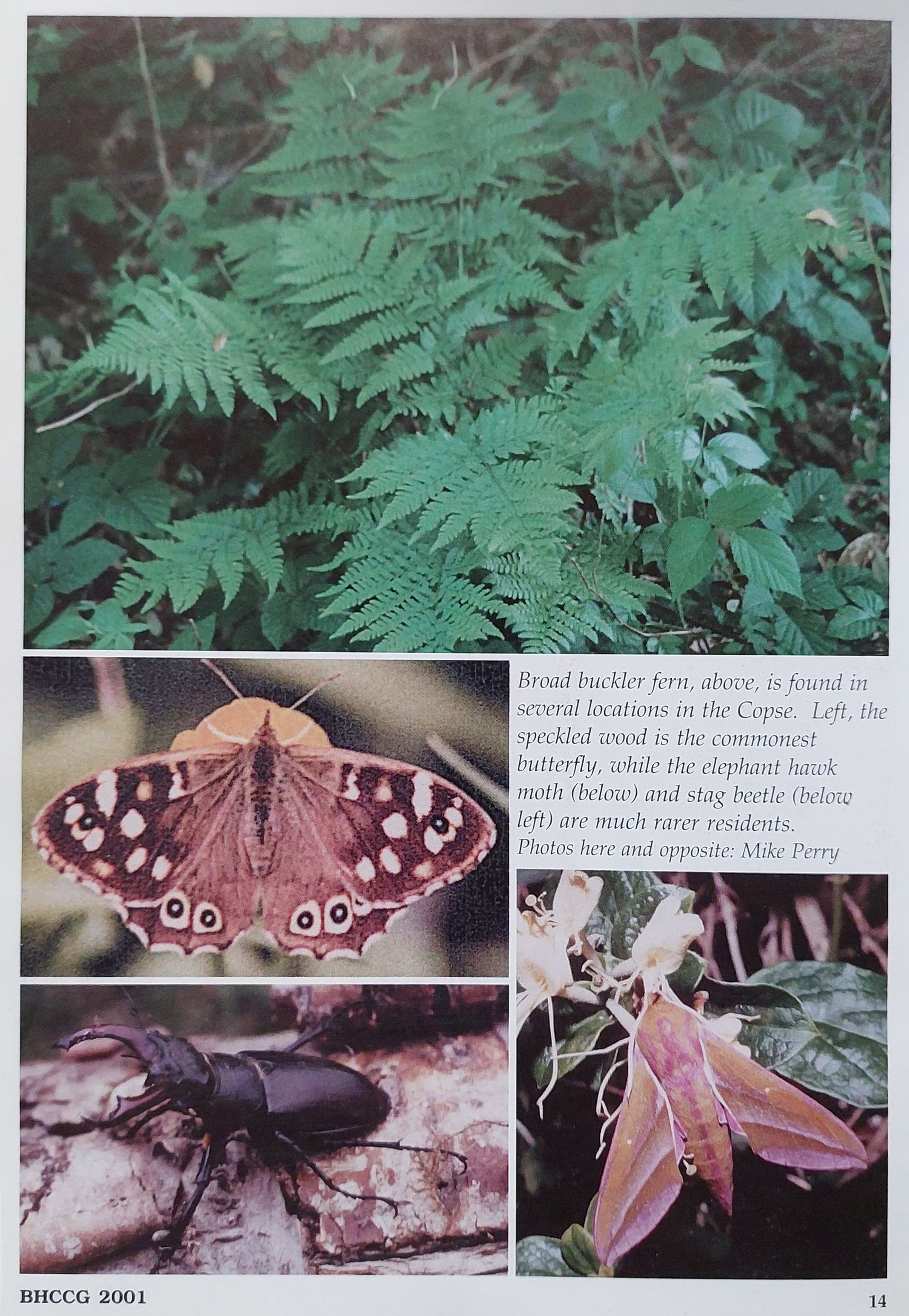 Positive ways of improving as well as maintaining the biodiversity of the Copse have been suggested by Chichester Natural History Society. Continuing coppicing is crucial, and opening up the area to more light would be a considerable advantage - this could be done by widening some pathways through the coppice, now largely overtopped by tree growth, or creating permanent glades. The benefit of coppicing is that there is regular cutting of different adjacent areas to provide a wide range of ages of regrowth which can support many insects, not just butterflies. The coppicing should be on a regular cycle over 10 or 15 years. Such more open areas would be invaluable in encouraging a greater overall range of plants, which would introduce more seed and berries as well as attracting more invertebrates, thus providing additional food for birds.